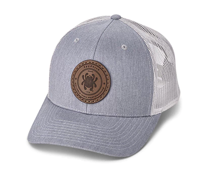 Esses bonés de alta qualidade estão disponíveis em três combinações de cores: cinza/cinza com patch de couro marrom e logotipo “Reliable High Performance™” (HAT13), grafite/preto com patch de couro preto gravado em baixo relevo e logotipo “Spyderco Knives and Accessories” (HAT14), e verde Loden/verde Loden com patch de couro marrom e logotipo “Reliable High Performance” (HAT15).