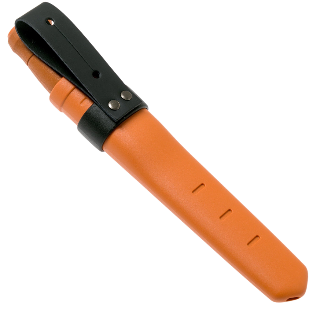 Faca Morakniv Kansbol Inox Burnt Orange 13505. Comprimento total: 22,6 cm. Tamanho da lâmina: 10,9 cm. Peso: 188 g. Espessura: 2,5 mm. Material da lâmina: Aço Inox. Material da empunhadura: Polímero. Acompanha bainha. Material da bainha: Polímero. Tipo de fio: Liso.