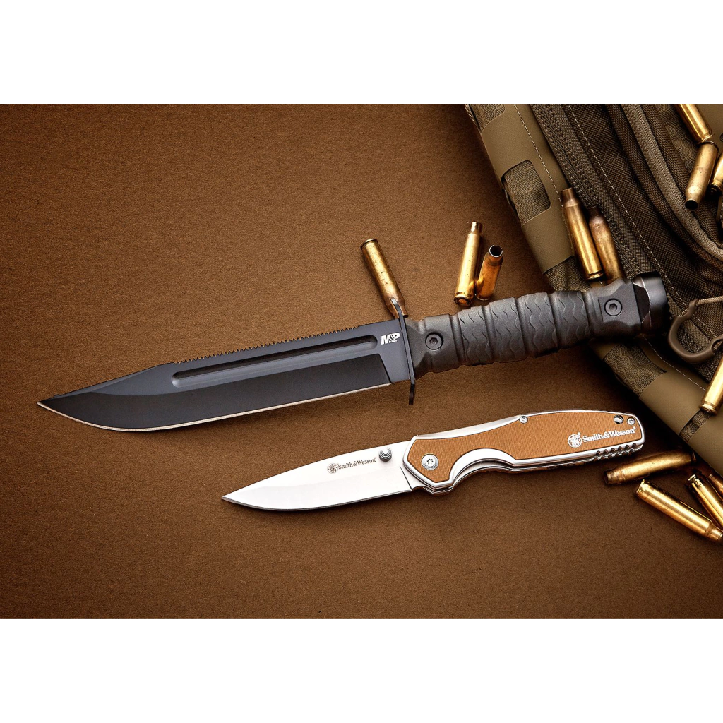 Uma abordagem moderna a um design clássico, as facas Smith & Wesson Special Ops estão prontas para suas tarefas mais desafiadoras. Com cabos fortemente texturizados e emborrachados, e uma lâmina de aço inoxidável de alta qualidade, elas podem lidar com qualquer desafio que surgir no seu caminho. O revestimento preto na lâmina full-tang de aço 8Cr13MoV proporciona uma vantagem tática a esta faca.