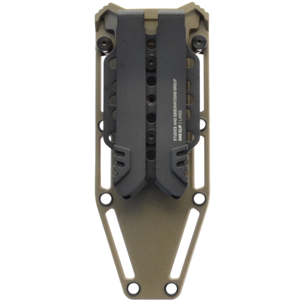 A lâmina full-tang de aço inoxidável 440C possui excelente resistência à corrosão e ao desgaste. O cabo emborrachado sobremoldado permite diversas pegadas, ideais em todos os ângulos e praticamente todos os ambientes. A bainha compatível com Sistema de Montagem Universal (UMS) da SOG é ambidestra, oferece várias opções de montagem e possui um sistema de ajuste de tensão sem a necessidade de quaisquer ferramentas, favorencendo o saque perfeito.