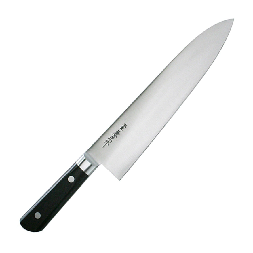 A faca Yo-Deba Kanetsune KC-759 apresenta uma lâmina de aço com alto teor de carbono SK-95 (SK-4) com cabo de madeira compensada e bolster de aço inoxidável.