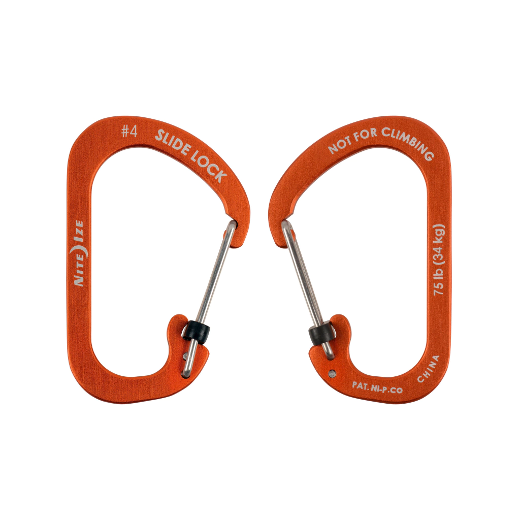 Mosquetão em alumínio com sistema de trava deslizante (SlideLock). Capacidade de carga: 34 Kg. Dimensões: 52mm x 81mm x 15mm.